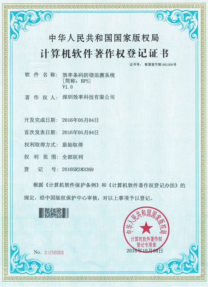 EPS條碼防錯追溯系統(tǒng)著作權